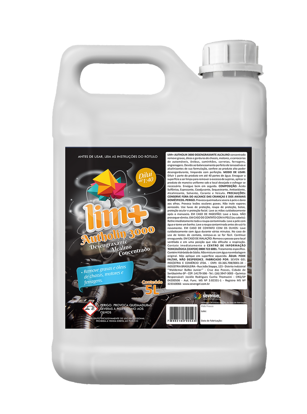 Desengraxante Alcalino concentrado remove graxas, óleos e gorduras de chassis,motores e carrocerias de automóveis, ônibus, caminhões, carretas, ferragens, engrenagens. Devido ao balanceamento perfeito de tensoativos e alcalinizantes de sua formulação,confere ao produto alto poder desengordurante, limpando com perfeição.